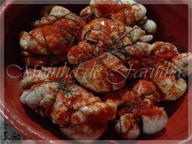 - Tempera com sal, azeite, salsa, louro, piri-piri, pimenta, alho, colorau...