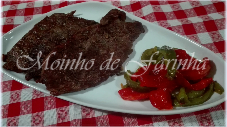 Também gosto muito de pimentos grelhados, então aproveitei e decidi-me por essa opção para acompanhar os bifes.