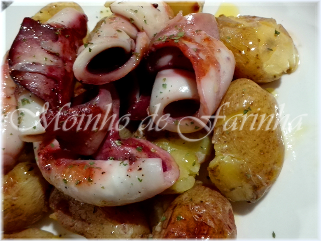 Coloca-as por cima das batatas a murro e tempera com alho e azeite.