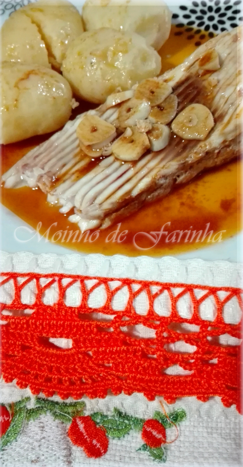 Tempera a raia com sal e leva-a a cozer num tacho com água. Depois de cozida, retira-lhe a pele. Coze as batatas com pele. Depois de cozidas, retira-lhes a pele. Leva um tacho ao lume com azeite e alho (não deixes fritar, apenas aquecer). Retira do lume e acrescenta o colorau e o vinagre. Mexe para envolver e rega a raia e as batatas com este molho...