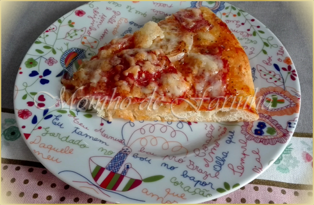 Bom dia! Esta foi uma pizza diferente (das anteriormente publicadas) que decidi fazer para o meu filho, ele que gosta muito destes salgados com queijo gratinado. Ficou muito boa! Eu acabo sempre por gostar das pizzas que faço em casa, especialmente quando uso a minha receita para a sua massa, mesmo não sendo eu uma grande apreciadora de "pizzas"...