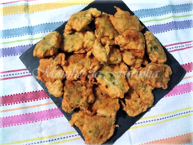 Numa taça colocas água, farinha e tempera com pimenta e sal. Mistura bem e acrescenta ovos batidos, salsa, cebola e o bacalhau. Envolve tudo muito bem e leva a fritar em óleo quente... Depois de fritos, coloca-os num prato sobre papel de cozinha antes de os apresentares no prato de servir.