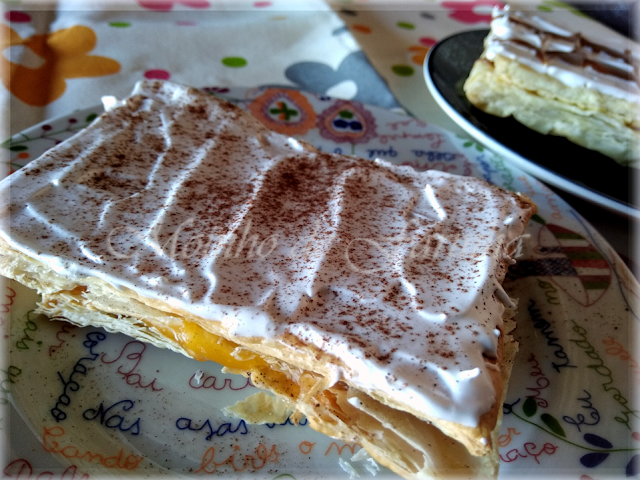 Bom dia! Para quem gosta de "mil-folhas", com esta simples sugestão poderão fazer vários! Eu optei por fazer nove usando duas placas de massa folhada, tal como indico abaixo, mas se quiserem podem também comentar partilhando as vossas ideias... Obrigada.