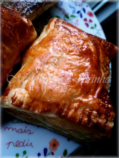 Sabendo que a minha filha gostou muito dos croissants com choolate que fiz recentemente, decidi fazer-lhe estes folhadinhos, de forma idêntica, muito simples e fáceis de se preperar, em poucos minutos, com 3~4 ingredientes, em seis simples passos, conforme eu explico mais abaixo na receita: