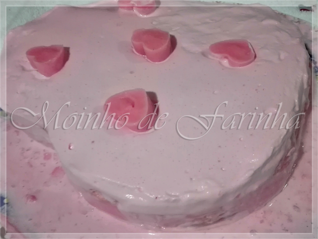Decora com corações de pudim preparados numa forma de silicone que é levada ao congelador até solidificarem...