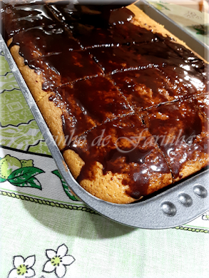 Vai acrescentando, aos poucos, o "creme de cenoura", mexendo sempre com um fouet... Ficando tudo bem misturado, transfere para o tabuleiro e leva ao forno (previamente aquecido a 180ºC) por 30 minutos (aproximadamente - faz o teste do palito). Corta depois o bolo em quadrados...