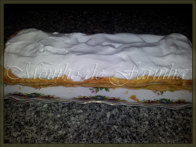fouet. Acrescenta as gemas, peneiradas, e mistura novamente. Depois de uniformemente misturado, junta esta mistura à calda do açucar com a manteiga. Leva novamente ao fogão e mistura com a ajuda de um