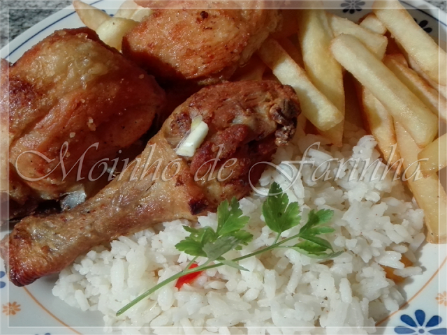 Deixo esta receita, podendo ainda ser uma sugestão para o almoço, ou talvez para o jantar! O resultado desta simples receita é um frango bastante apetitoso, com um ótimo aspeto, dourado, e de pele estaladiça... Fica muito bom!