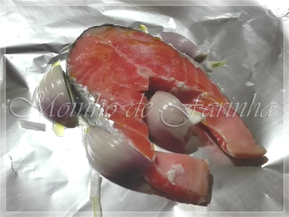 Fica mais uma receita de peixe, neste caso salmão...